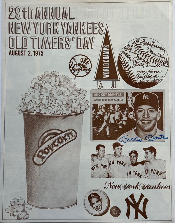 Mickey Mantle Signed 29th Annual Yankees Old Timers Day Program August 2 1975. Signed in blue sharpie across the front of the program. This autographed magazine is authenticated by PSA Cert# V06481.