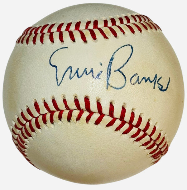 Ernie Banks Autographed Official Major League Baseball. Signed in blue pen across the sweet spot on this Official William White Baseball. This autographed baseball is authenticated by James Spence Cert# CJ55401.