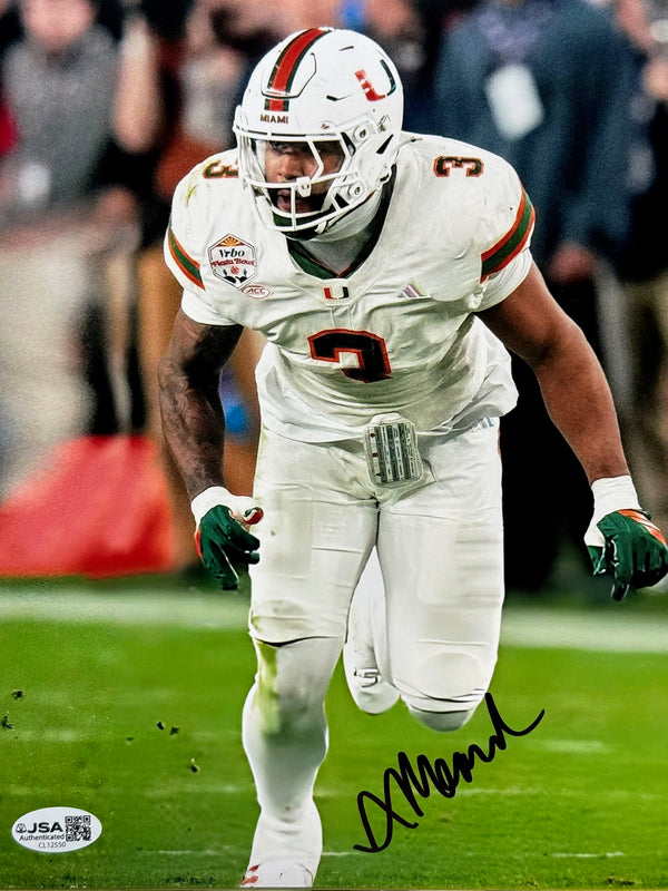 Akheem Mesidor Autographed Miami Hurricanes 8x10 Photo. Signed in black sharpie across the front of the photo. This autographed photo comes with a certificate of authenticity from James Spence Authentication.