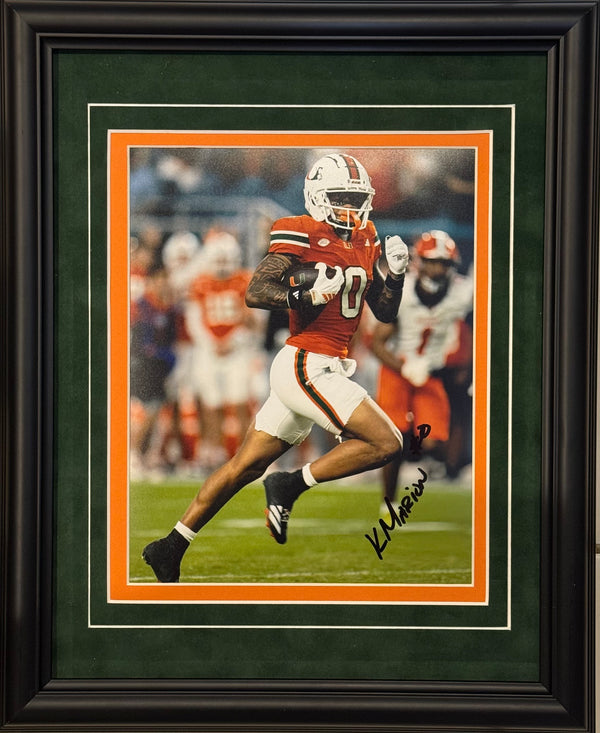 Keelan Marion Autographed Miami Hurricanes 8x10 Framed Photo. Signed in black sharpie across the front of the photo. This autographed photo comes with a certificate of authenticity from Hollywood Collectibles.