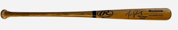Juan Pierre Autographed Rawlings Adirondack Big Stick Bat. Signed in blue sharpie across the barrel of the bat with inscription "WS Champs 2003". This autographed bat comes with a certificate of authenticity from Hollywood Collectibles.