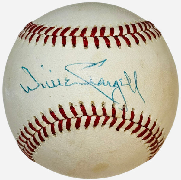 Willie Stargell Autographed Official National League Baseball. Signed in blue pen across the sweet spot of official Bart Giamatti Baseball. This autographed baseball is authenticated by James Spence Authentication Cert# CJ55382.